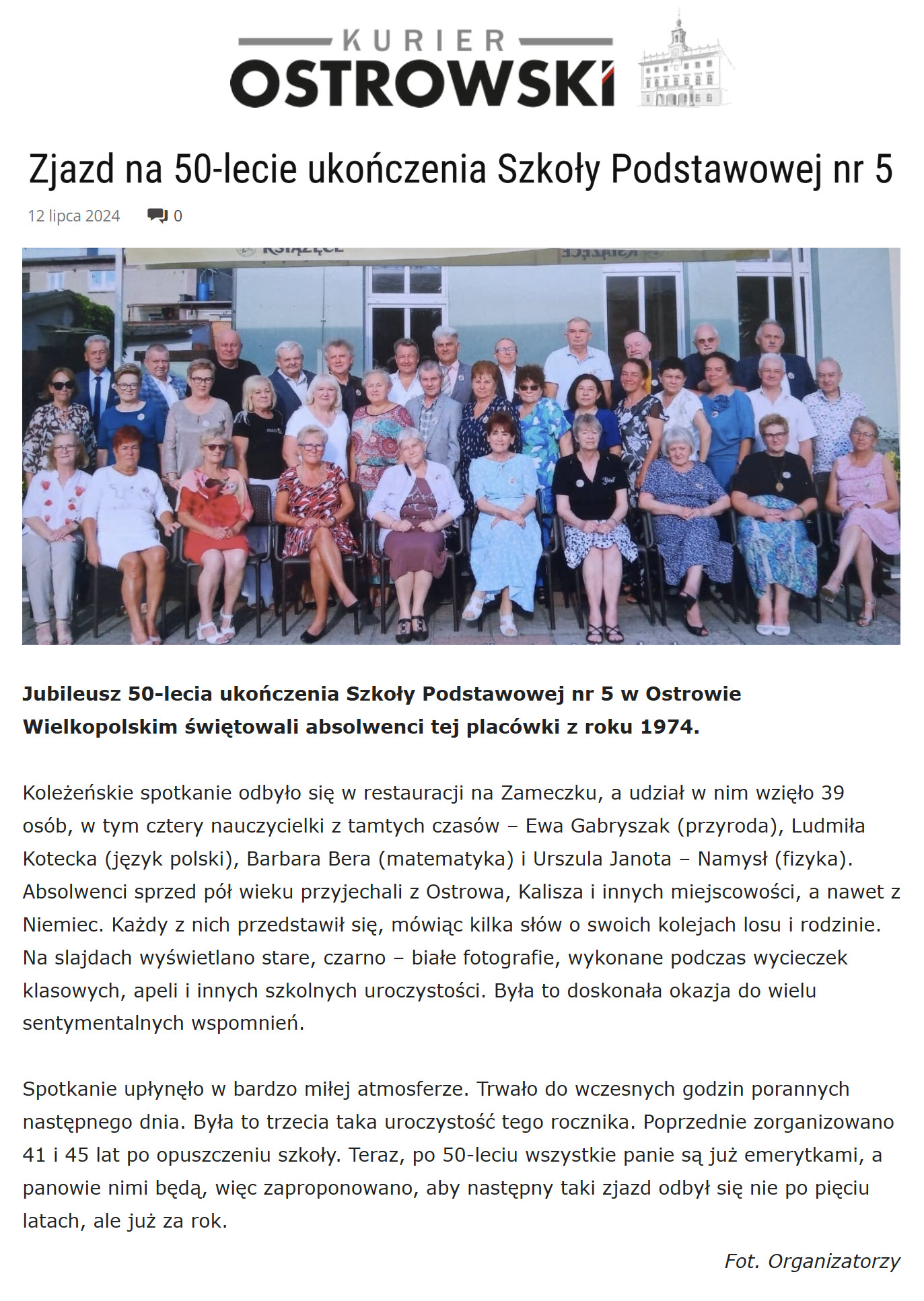 O zjeździe 2024 w Kurierze Ostrowskim